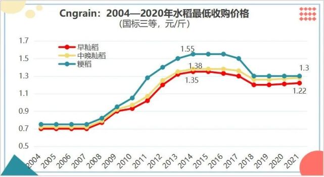2月26日,國家發(fā)改委公布了2021年稻谷最低收購價(jià),2021年生產(chǎn)的早秈稻(三等,下同)、中晚秈稻和粳稻最低收購價(jià)分別為1.22元/斤、1.28元/斤和1.30元/斤,秈稻比上年提高一分錢(qián),粳稻維穩不變。