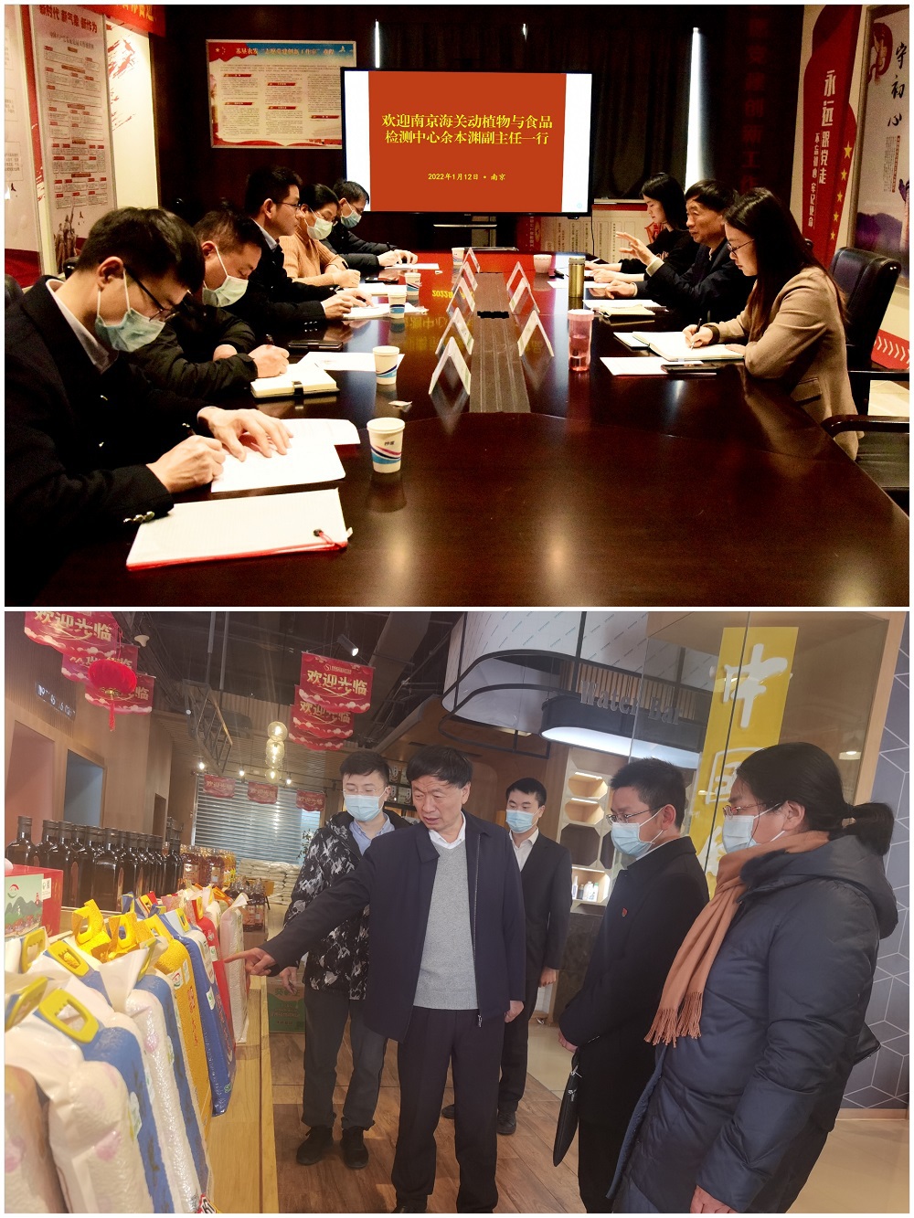 1月12日,南京海關(guān)動(dòng)植物與食品檢測中心余本淵副主任一行5人來(lái)到蘇墾農發(fā),參觀(guān)學(xué)習、交流探討黨建工作。蘇墾農發(fā)黨委副書(shū)記、工會(huì )主席倪志愿陪同參觀(guān)交流。