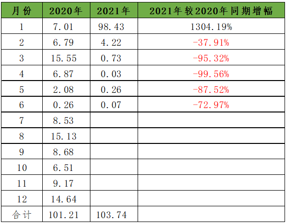 表1 俄羅斯大豆出口量2020年與2021年對比情況(單位:萬(wàn)噸)