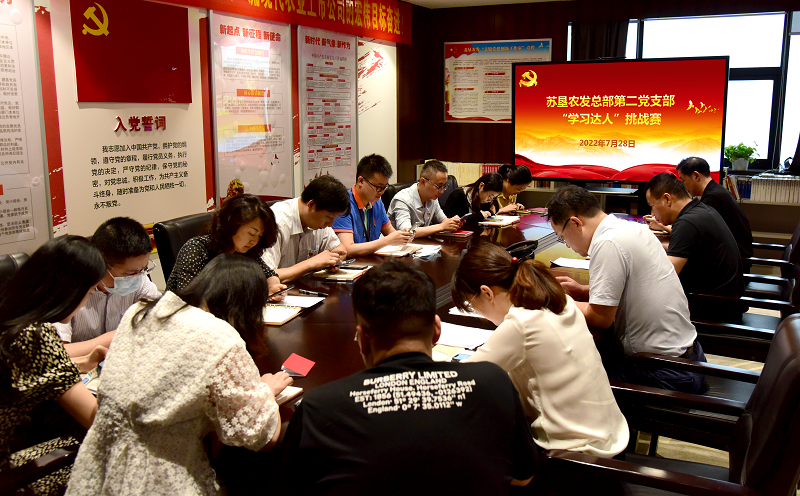 為迎接黨的二十大勝利召開(kāi)營(yíng)造良好氛圍,引導支部黨員真正做到學(xué)黨史、悟思想、辦實(shí)事、開(kāi)新局,7月28日下午,蘇墾農發(fā)總部第二黨支部開(kāi)展“學(xué)史增信 厚植愛(ài)國情懷”主題黨日活動(dòng),除“第一議題”學(xué)習、開(kāi)講十分鐘、交流學(xué)習心得、觀(guān)看廉潔文化視頻、現場(chǎng)交納黨費等環(huán)節,支部黨員面對面在線(xiàn)上開(kāi)展了“學(xué)習達人”挑戰賽。