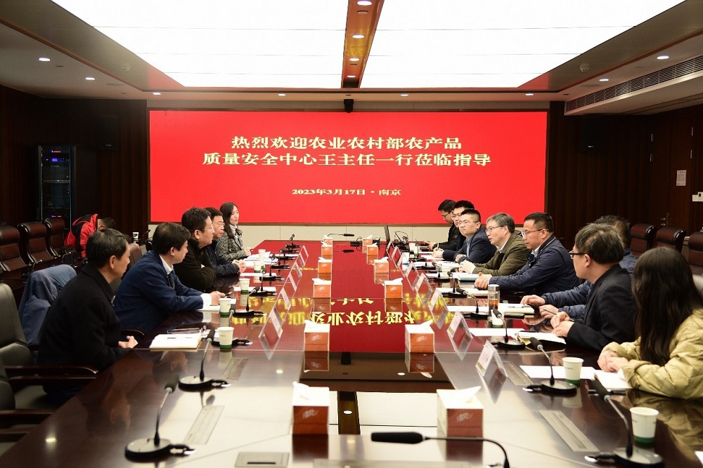 2023年3月17日,農業(yè)農村部農產(chǎn)品質(zhì)量安全中心副主任王子強一行到江蘇省農墾農業(yè)發(fā)展股份有限公司開(kāi)展全面質(zhì)量管理、全國名特優(yōu)新農產(chǎn)品調研工作。江蘇省農科院副院長(cháng)劉賢金,蘇墾農發(fā)總裁朱亞?wèn)|等相關(guān)人員陪同調研。