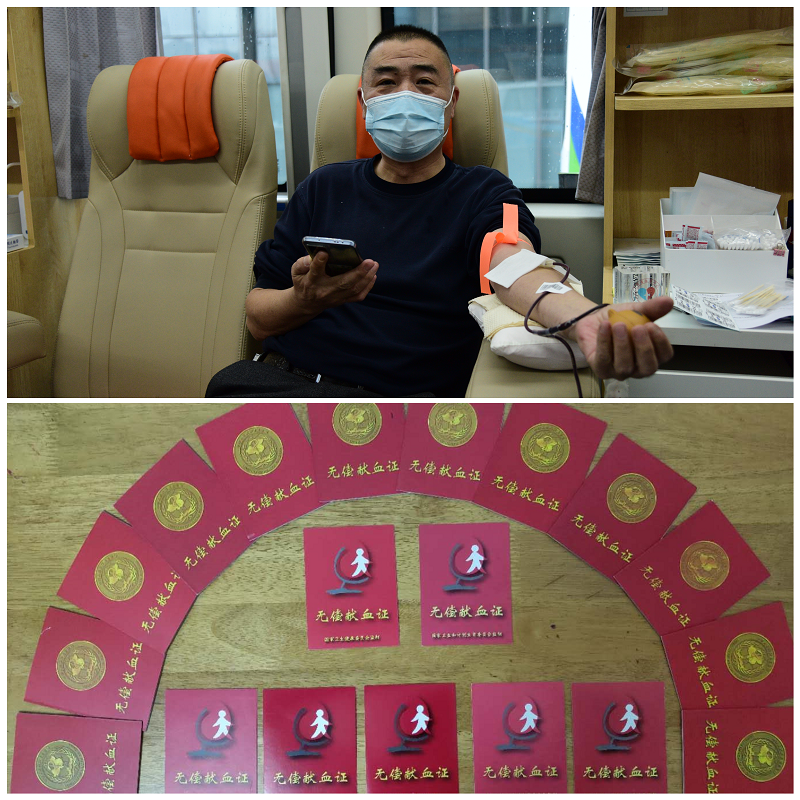 獻血車(chē)的空間不大,但大愛(ài)與奉獻在這里傳遞,暖流在這里流淌。正在獻血的汪海峰,是大華種業(yè)集團的一名普通員工,他被許多人稱(chēng)呼為“獻血達人”。多年來(lái),他堅持參與愛(ài)心獻血活動(dòng),積累起來(lái)的無(wú)償獻血證已經(jīng)超過(guò)20本,獻血總量達9600cc。他是首批“江蘇省無(wú)償獻血榮譽(yù)證”獲得者?!皩W(xué)雷鋒要見(jiàn)行動(dòng),力所能及、互幫互助嘛?!彼f(shuō),“我能夠通過(guò)自己的一點(diǎn)微薄之力就能幫助到需要的人,對我而言是一件很有意義的事?!泵鎸ΜF場(chǎng)宣傳人員的鏡頭,他一直婉拒,幾經(jīng)堅持才勉強配合拍下一張照片。