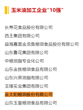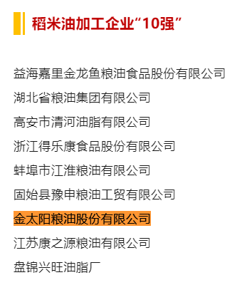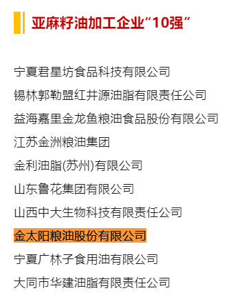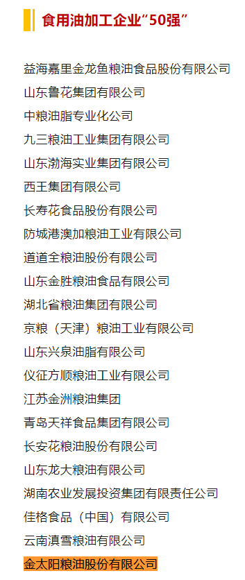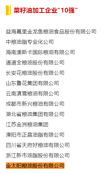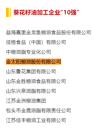 喜報!2024年食用油加工企業(yè)“50強”、“10強”公示名單,金太陽(yáng)糧油入選榜單!