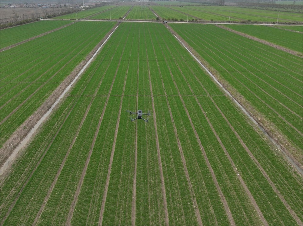 (2024年11月9日,蘇墾農發(fā)東辛分公司無(wú)人機查看苗情)