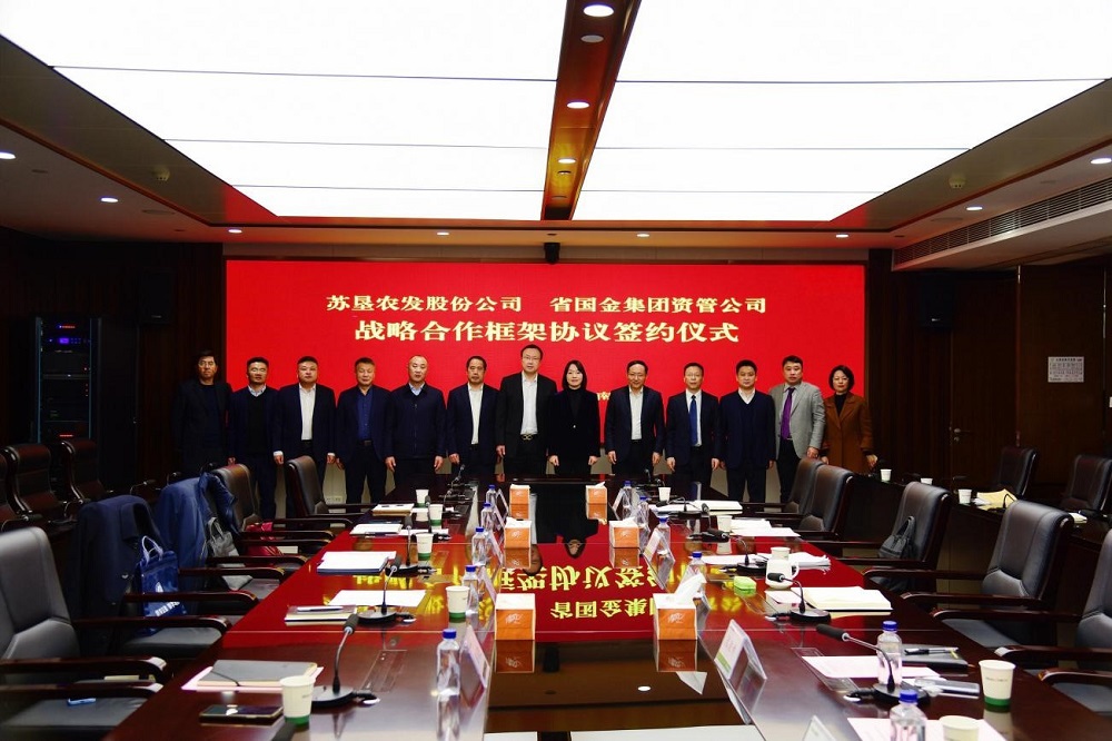 2024年12月31日,蘇墾農發(fā)與省國金集團資管公司戰略合作框架協(xié)議簽約儀式在南京舉行。集團公司黨委委員、蘇墾農發(fā)總裁丁濤和省國金集團總經(jīng)理、黨委副書(shū)記童瑋分別致辭。