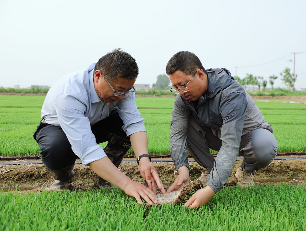 端午時(shí)節,蘇墾農發(fā)東辛分公司托管基地的水稻秧田生機勃勃。今年,托管基地1.2萬(wàn)畝水稻全部推廣微噴灌育秧技術(shù),實(shí)現技術(shù)全覆蓋,標志著(zhù)傳統水稻育秧向節水高效模式的跨越。