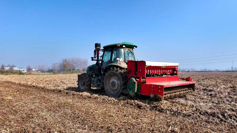 精細化管理是今年秋播工作的又一亮點(diǎn)。各外拓基地根據當地實(shí)際情況,制定了詳細的秋播技術(shù)方案和田間管理預案?;剞k全體人員分區包干,駐點(diǎn)跟蹤服務(wù),對整地質(zhì)量、播種深度、密度和施肥量等進(jìn)行專(zhuān)項督查指導,做到“一區一策”,實(shí)現精準化管理。同時(shí),加強土壤墑情監測,密切關(guān)注天氣變化,及時(shí)做好抗旱防澇準備,確保秋播小麥在最佳環(huán)境下生長(cháng)。此外,充分發(fā)揮現代農業(yè)機械化優(yōu)勢,外聯(lián)大批先進(jìn)、智能的農業(yè)機械參與秋播作業(yè)。根據今年土壤墑情,選擇小履帶拖拉機進(jìn)行開(kāi)溝作業(yè),安裝了北斗導航系統的智能化播種機實(shí)現直線(xiàn)播種、播深一致,不僅大幅提升了作業(yè)效率和質(zhì)量,也為后續的田間管理和機械化收獲創(chuàng )造了有利條件。